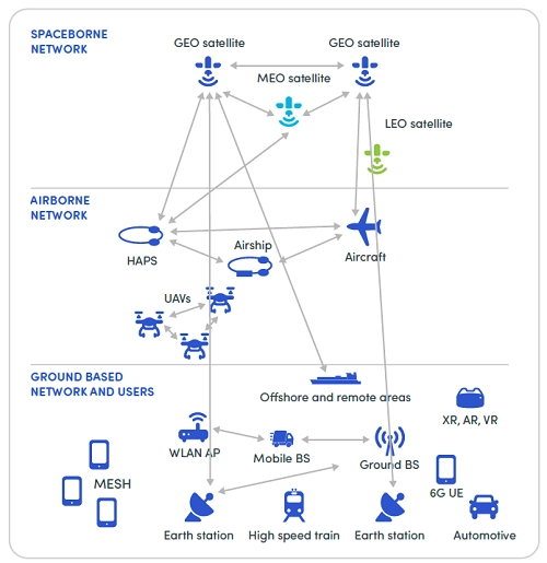 Compared to terrestrial 5G, NTNs increase the network’s horizontal complexity. Deserts, mountains, high-speed trains, ships, and more are all par for the course. Vertical complexity stems from connectivity that must be supported between land and space.