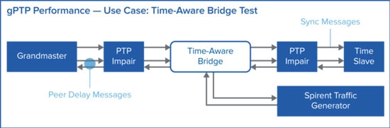Spirent provides a test bed that emulates, measure and impair gPTP networked devices using industry proven techniques and products to help develop robust products with accurate timing.