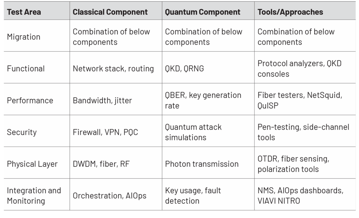 Unlike PQC, QKD validation takes place in the quantum channel itself, and stress testing is needed to cover this and extend to the service layer. Emulated twin networks are once again vital in this process, and tests should examine polarization disturbances and reflection events to interference from DWDM signals – ensuring quantum and classical traffic can co-exist within the same DWDM fiber.